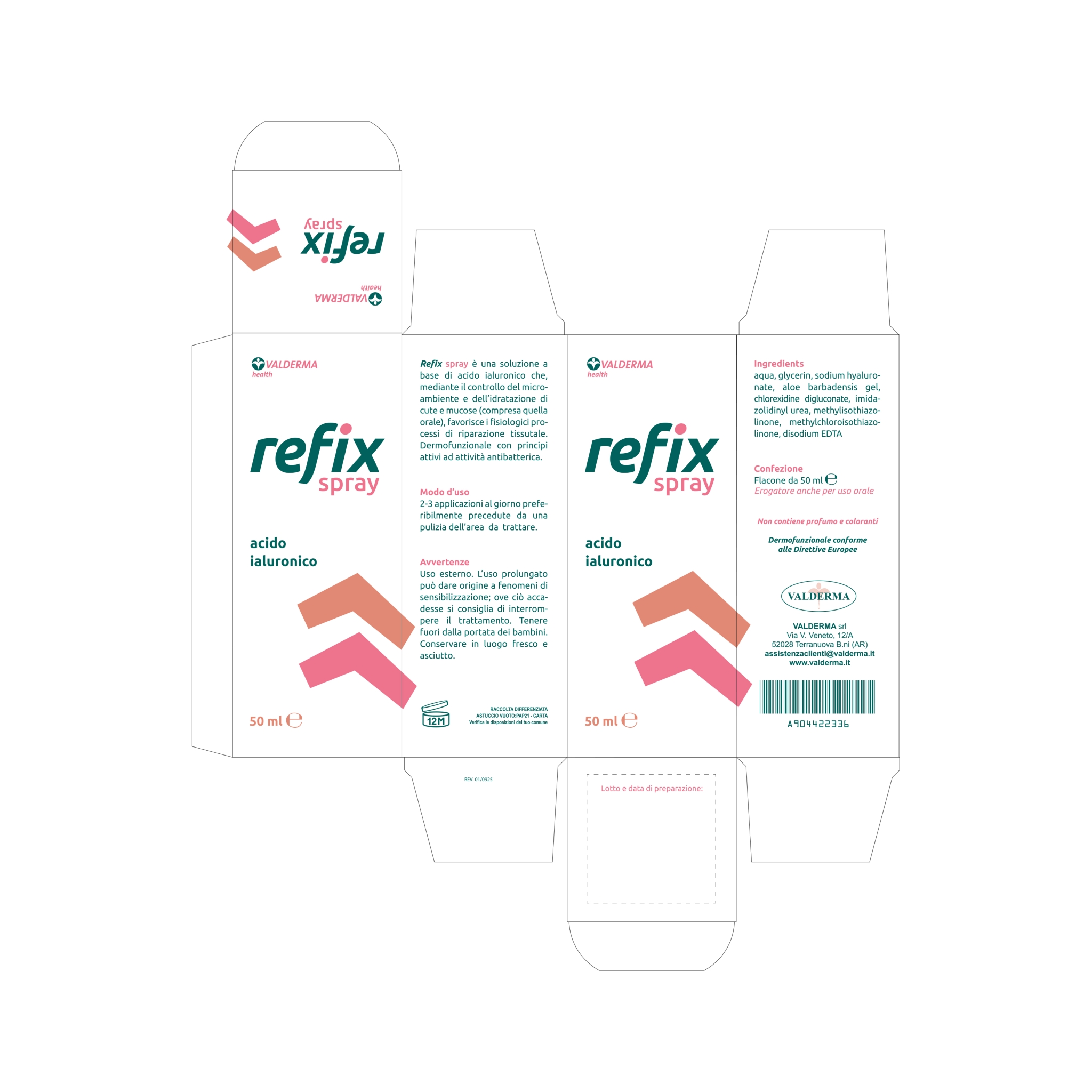 Refix spray è una soluzione a base di acido ialuronico che, mediante il controllo del microambiente e dell’idratazione di cute e mucose (compresa quella orale), favorisce i fisiologici processi di riparazione tissutale. Dermofunzionale con principi attivi ad attività antibatterica. Dermofunzionale conforme alle direttive europee